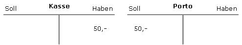 - Das Konto "Porto" ist ein Aufwandskonto und steht damit rechts in der Bilanz. Es findet eine Minderung des Eigenkapitals statt => Konto "Porto" wird links gebucht.