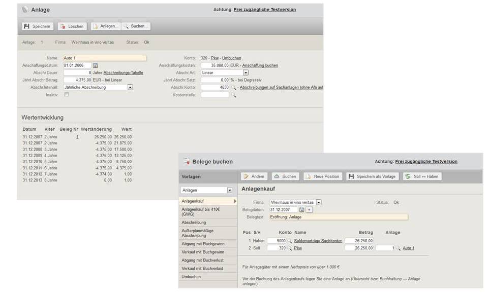 Sie können das Programm 30 Tage kostenlos und unverbindlich auf Herz und Nieren prüfen. Die Daten, die Sie in dieser Zeit eingeben, bleiben nach Ablauf der Testphase erhalten. Das heißt, Sie können gleich von Beginn an produktiv arbeiten.