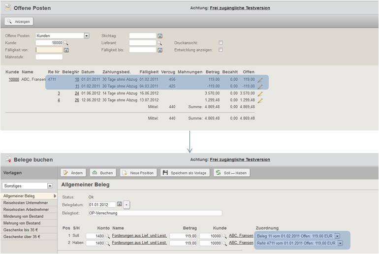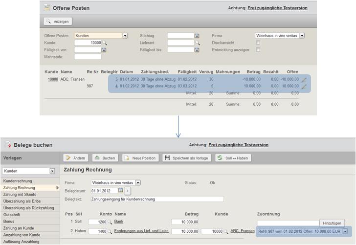 Siehe auch: Einführung Buchhaltung *Nicht in allen Versionen ↑ Inhalt Offene PostenDie Liste ermöglicht die Anzeige der offenen Kunden- und Lieferanten-Rechnungen. Daneben können die bereits ausgeglichenen Posten mit angezeigt werden. Füllen die Felder entsprechend Ihren Auswahlkriterien aus und klicken Sie dann auf Anzeigen. Um sich einzelne Posten anzeigen zu lassen, klicken Sie auf die als Link gekennzeichnete Buchungsnummer *.